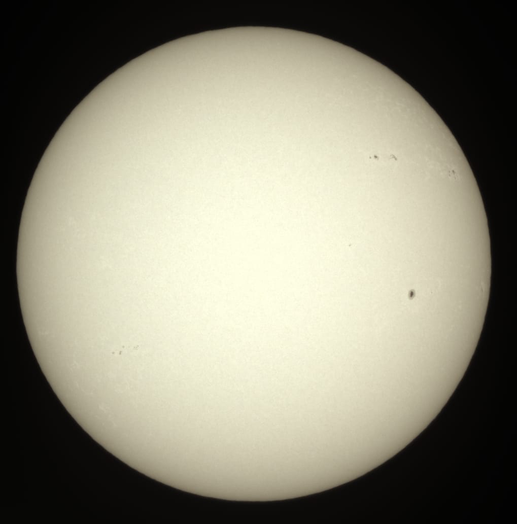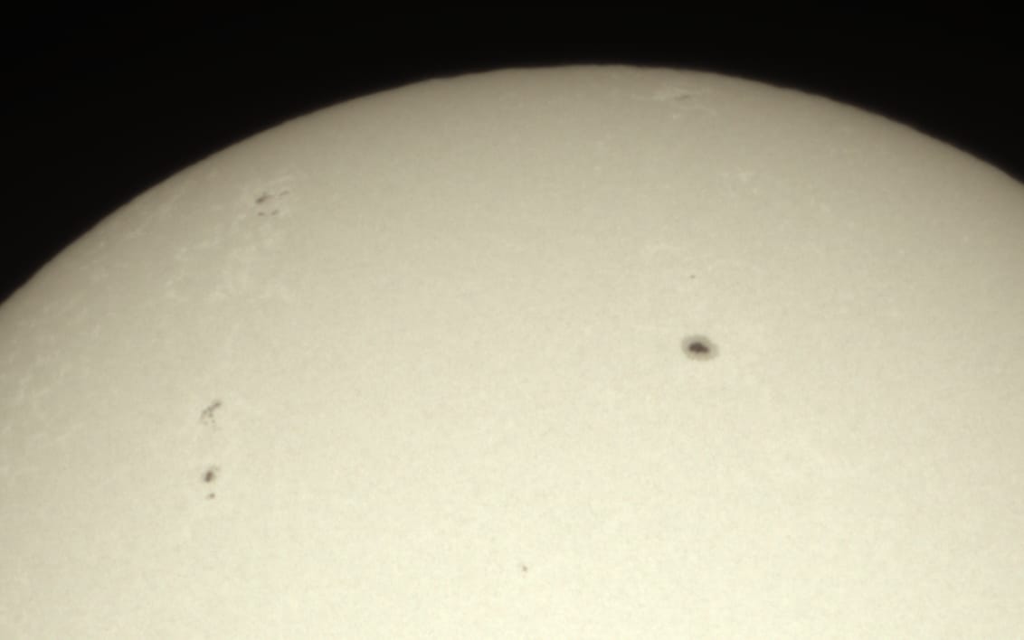 Using the high-tech scientific ED127 telescope, equipped with a solar filter and the sophisticated ASI071PRO camera, we’ve managed to photograph sunspots with incredible detail. Sunspots are cooler areas on the sun’s surface, appearing as dark spots, and are indicative of intense magnetic activity. These phenomena are critical to understanding the sun’s magnetic field and its impact on solar radiation.